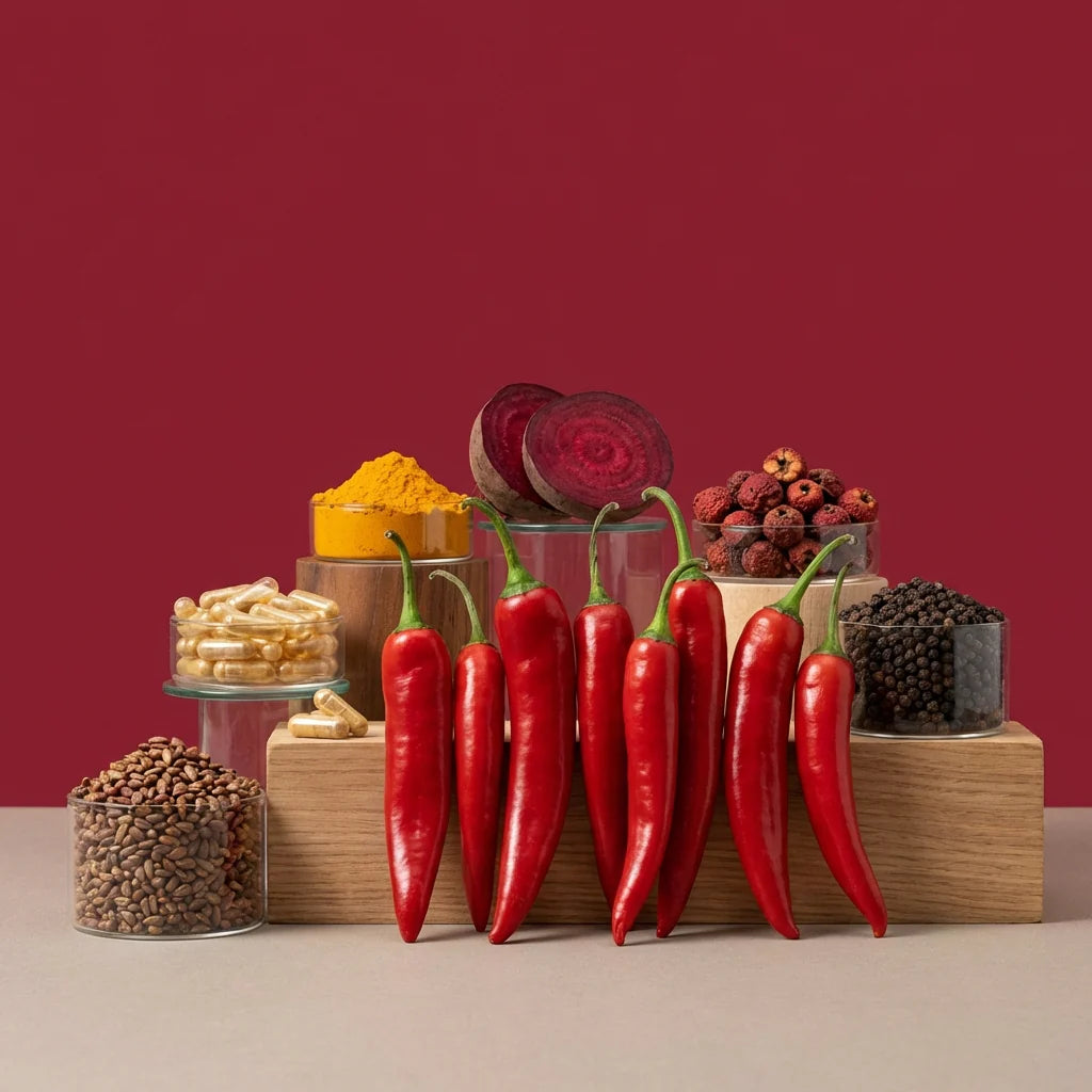 Estratto di pepe di Cayenna: Supporta una sana circolazione sanguigna e favorisce l'energia naturale.